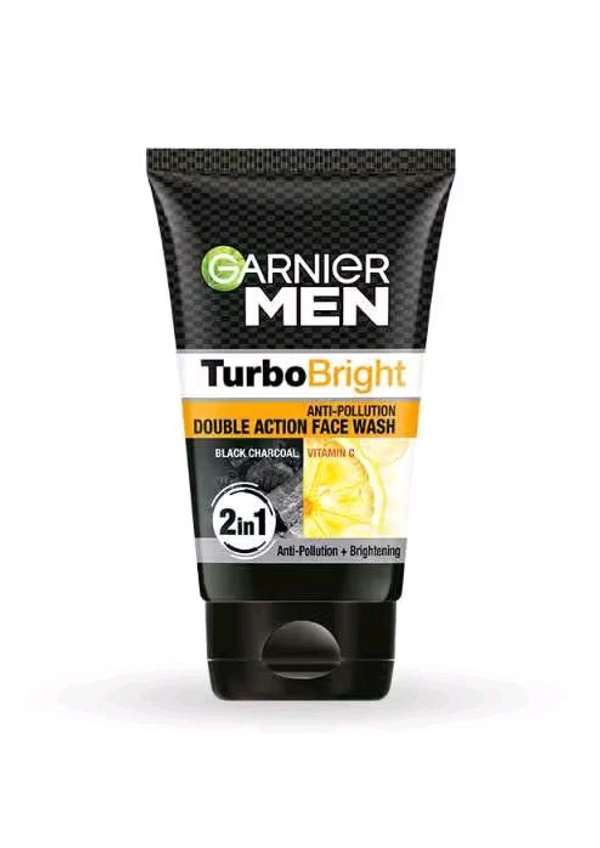 Garnier Men TurboBright, Black Charcoal + Vitamin C, Anti-Pollution Double Action Face Wash